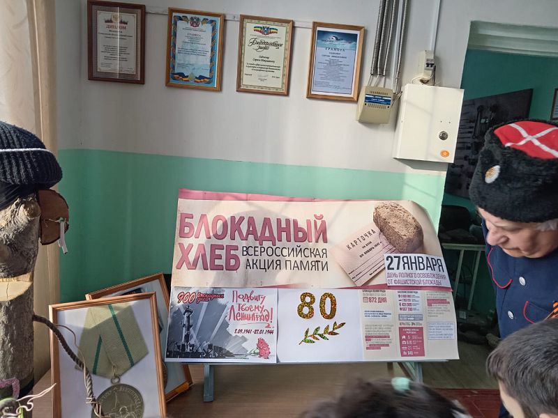 Ребята из детского сада "Теремок" посетили Комнату боевой славы под руководством Сидненко С. Н., где проходила всероссийская акция памяти "Блокадный хлеб". 27 января день полного освобождения Ленинграда от фашистской блокады.