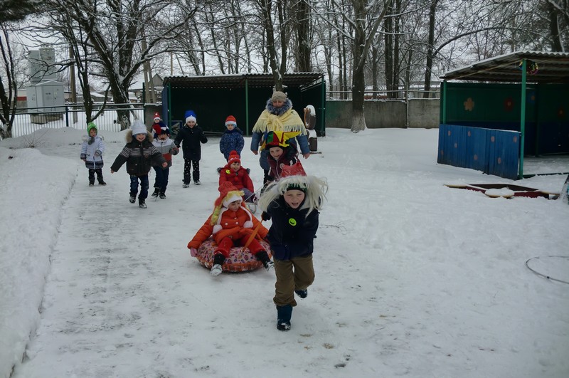 Ребята вместе со взрослыми играли в русские народные игры, катались на санках.
