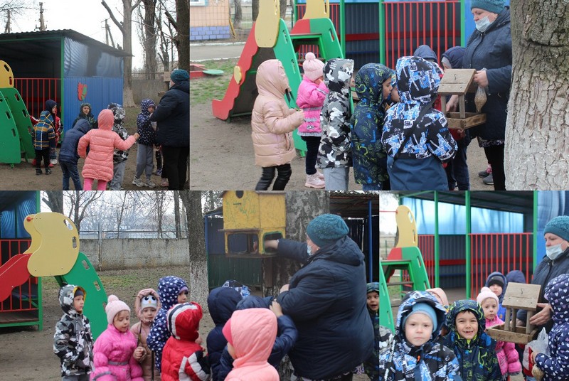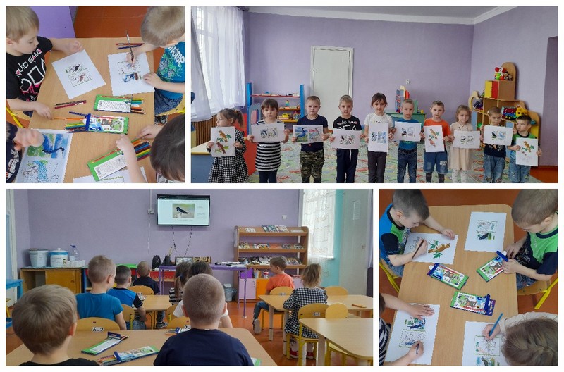 В первой половине дня младшая группа сделала аппликацию «Скворечник», а ребята старшей группы раскрашивали перелетных птиц.