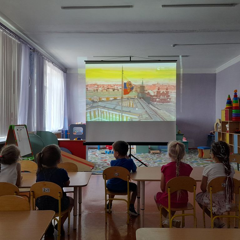 В МБДОУ детский сад Теремок проводятся мероприятия посвящённые дню государственного флага России. Сегодня дети посмотрели презентацию для дошкольников "Три цвета флага".