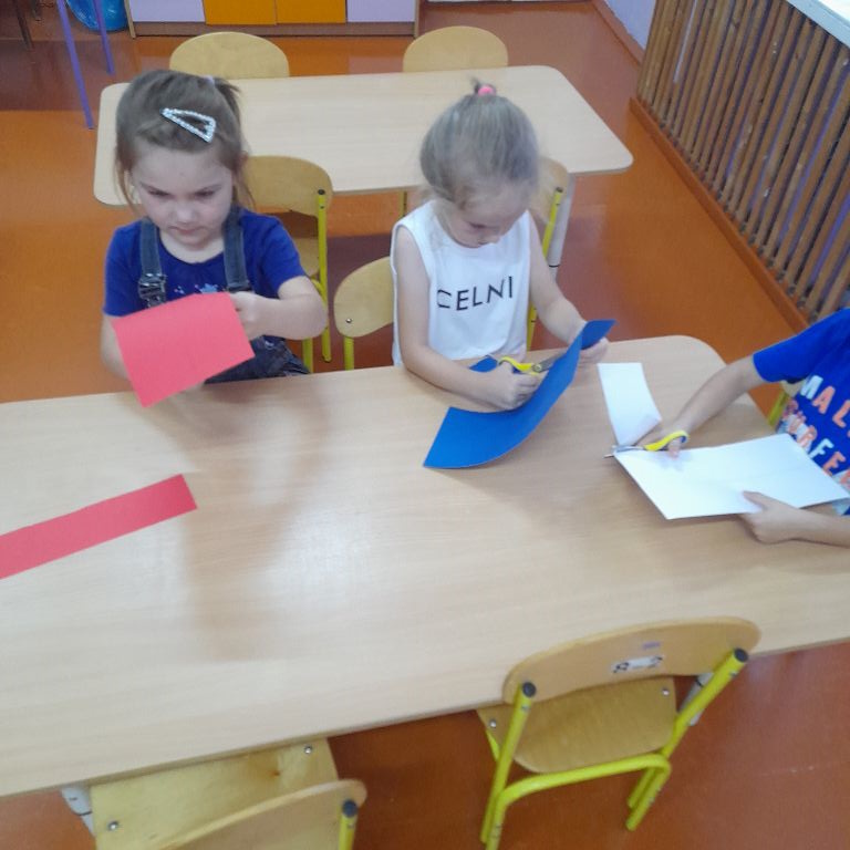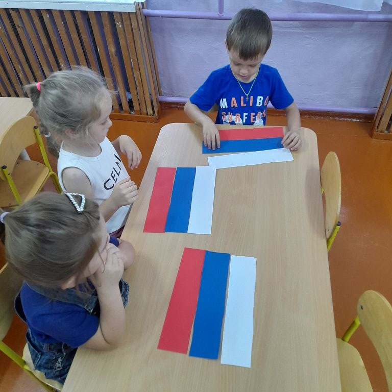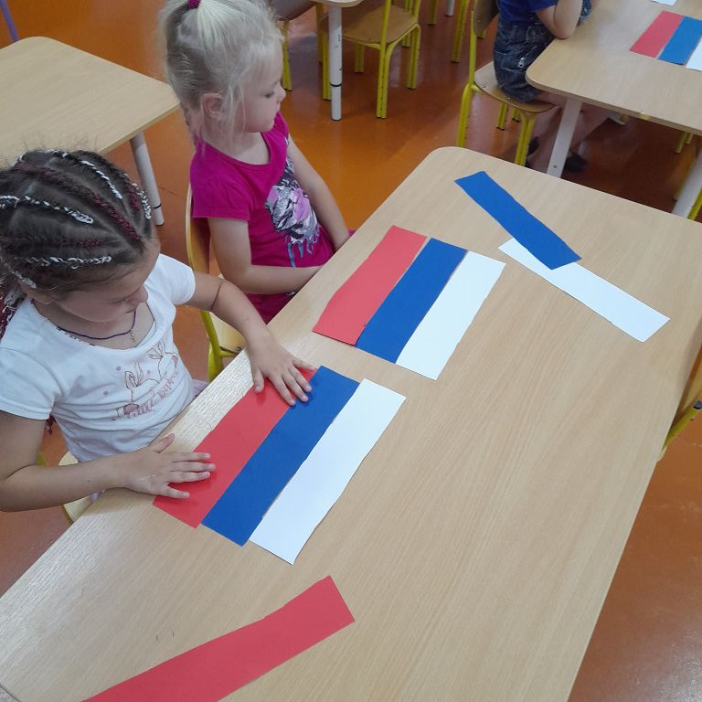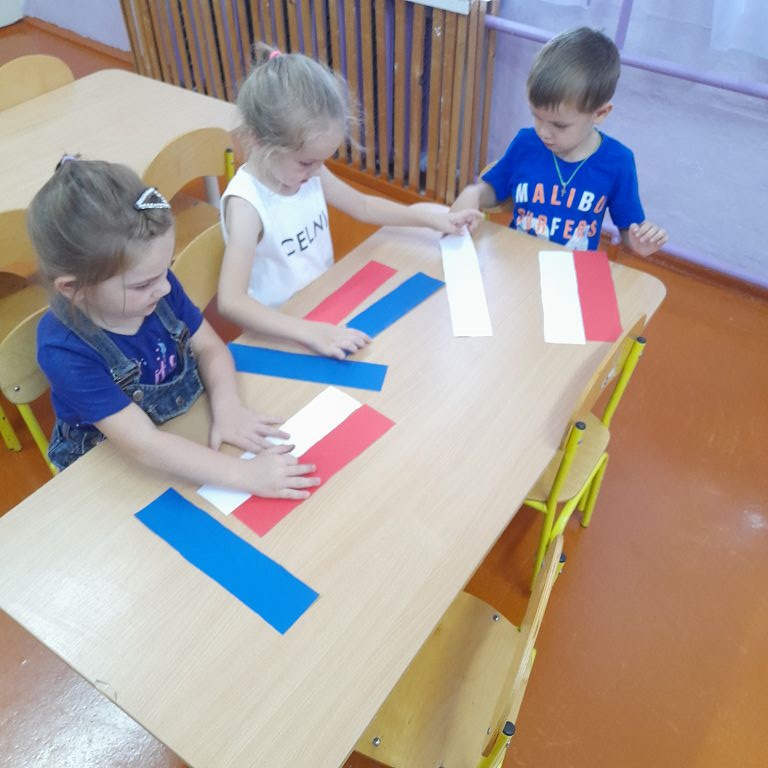 После просмотра ребятам было предложено самим сделать триколор России из цветной бумаги. Что они с удовольствием сделали.