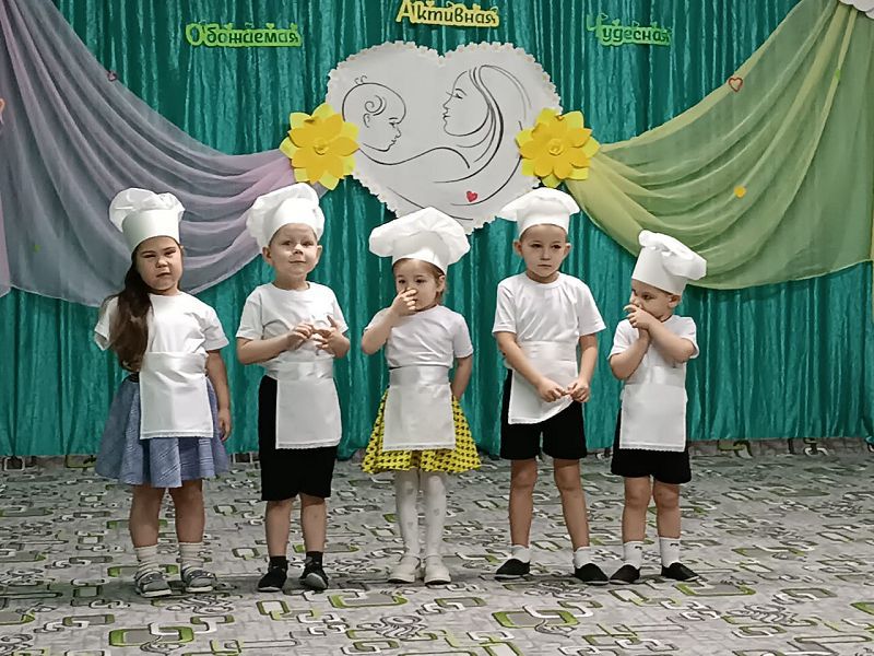 Сегодня МБДОУ детский сад Теремок провел праздник для мам "Дорогое сердцу слово", посвящённый дню матери. Начался праздник с танца с цветами в исполнении старшей группы. Продолжили праздник ребята младшей группы танцем "Волшебный платочек". Также ребята старшей группы спели песни "Мамочка любимая" и "Песня мамонтёнка", а также исполнили танцы "Бим, бам, бом" и кадриль с ложками. Младшие дети исполнили песню "Пирожки" и показали танец "Мухоморчики". Между номерами дети читали стихи мамам.