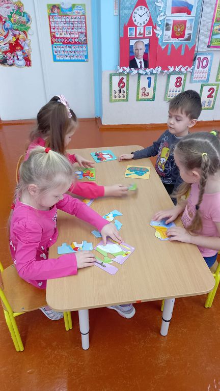 Ребята участвовали в соревнование "Кто быстрее соберет пазлы".