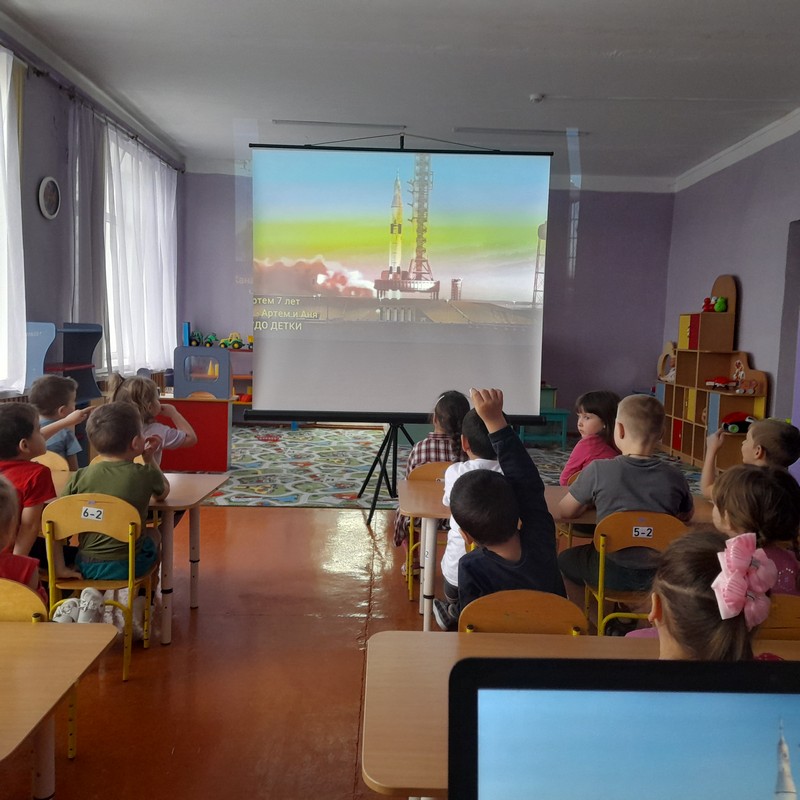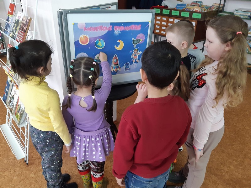 Ребята старшей разновозрастной группы посетили библиотеку, где Наталья Михайловна на очередном заседании клуба " Мудрая сказка" рассказала о том, что первыми в космос летали две собаки Белка и Стрелка, а первым человеком облетевшим вокруг Земли был Юрий Алексеевич Гагарин. Потом "запускали ракеты"(воздушный шар), поиграли в игру "Космические приключения", прослушали и обсудили сказку о планетах. Побывали космонавтами. На фото все были в скафандрах.